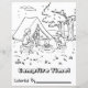 Schattigee kleurplaat met een met een campingthema. Een gezin dat rond een kampvuur op hun camping zit, is gewoon aan het ontspannen.