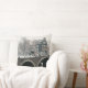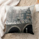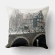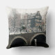 Foto gooit het kussen met een kanaal met een brug, traditionele huizen en fietsen in de winter onder een of andere sneeuw in de Nederlandse hoofdstad Amsterdam, Nederland.