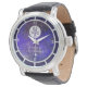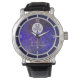 Een elegant zodiaal tekenontwerp met een donkerblauwe grens, sterren met het zodiale teken van de Kanker erop. Pas dit horloge eenvoudig aan de jouw naam en de geboortedatum. - ontworpen met ❤ van Zaubershirts -