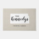 Moderne boerenboerengepersonaliseerde doormat met je familienaam in je staatskaart. Faux burlap canvastextuurachtergrond. Klik op Aanpassen om uw eigen tekst en afbeeldingen toe te voegen en een uniek ontwerp te creëer!