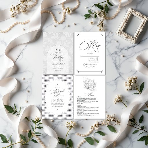 Omarm de tijdloze romance met deze huwelijksuitnodiging met een delicate kantachtergrond, elegante zwarte bloemenillustratie en klassieke typografie. Het ontwerp wordt aangevuld met een handige QR-code op de achterzijde, waardoor gasten moeiteloos toegang hebben tot huwelijksdetails. Perfect voor koppels die op zoek zijn naar een verfijnd "White Wedding" -thema dat nostalgie combineert met moderne functionaliteit.