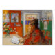 Karin Larsson assis à la table dans un châle lisant un livre. Art vintage de l'artiste suédois Carl Larsson.