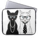 Dit ontwerp is voorzien van een zwarte vrouw kat die is gekleed in parelachtig ketting en een witte mannelijke kat die is gekleed in een gesticht stropdas.