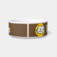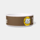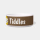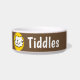 Voeg de naam van uw huisdier toe aan deze leuke kom die een cartoon stijlillustratie van een kattenglimlach bevat. Bruine achtergrond.
