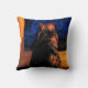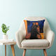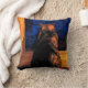 Deze decoratieve gooiende kussen hebben een prachtige gouden, oranje en bruine tortoiseshel kat die uit het raam staart naar een middernacht blauwe hemel. Ze werpt een schaduw op het gouden gekleurde houten raam. Het afbeelding wordt op de achterkant herhaald.