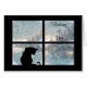 Een silhouet van een kat zit in een raam met een koude winterscène buiten. Denk aan jou boven haar.