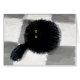 Een wazige vlek van zwarte kat zit op een vloer met een dambord met betonnen vloer, met gele ogen.
