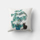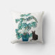 Moderne waterverf schilderij van een kleine zwarte kat zittend bij een Monstera Deliciosa of Swiss Cheese plant in een turquoise blauwe potje. Originele kunst van Nic Squirrell. Geweldig voor liefhebbers van katten en kamerplanten.