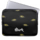 Kat-ogen van de douane op zwart laptop sleeve