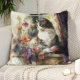 Decoratorkussen met een mooi schilderij van een kat naast een raam, met het zonlicht dat de kamer ingaat.