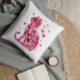 Dit prachtige kunstwerk heeft een silhouet van een zittende kat die volledig bestaat uit ingewikkelde rozen, bloemen en hartmotieven in tinten van roze, rood en wit. Rondom de kat zweven hartaccenten, voegen een vleugje romance en grilligheid toe en vangen de essentie van liefde en de charme van katten.