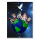 kaart. Je kunt de duif bewegen. U kunt tekst aan de voorzijde toevoegen en de tekst aan de voorzijde wijzigen, het lettertype, de tekengrootte en de tekenkleur wijzigen. De sterachtergrond is een foto NASA en de aarde en de duif zijn bedankt aan clker.com