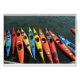 Kayaks colorés se reposant dans l'eau attendant juste pour aller ! Décoration d'une ligne de produits merveilleuse des T-shirts dans des tasses.