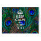 Votre personnalisation Keep Calm vous dit sur un beau décor coloré couleur paon plumes style. Un style personnalisé Keep Calm en disant sur un cadeau de nature. Essayez humour ou fantaisie sur vos mots créatifs sur deux lignes de texte modifiables. N'oubliez pas d'utiliser les lettres CAPITAL pour obtenir les meilleurs résultats. Utilisez le lien "Demandez à ce concepteur" pour nous contacter pour vos demandes spéciales de design ou pour obtenir de l'aide pour votre projet de personnalisation.