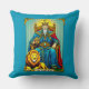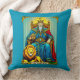 Kussen in een tarot-geïnspireerd ontwerp met "De Keizer" gezeten op een troon, gekroond en gekleed in koninklijk blauw en rood. Een machtige leeuw staat aan zijn zijde en symboliseert kracht en autoriteit. De kaart symboliseert stabiliteit, leiderschap en discipline.
