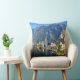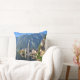 Foto gooi kussenkussen met een landschap met de kerk en de huizen van het kleine dorpje Hallstatt in Oostenrijk, met reflectie in het stilstaande water van het Hallstatt meer en op de achtergrond de Alpen bergen op een prachtige heldere hemel zomerdag.