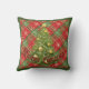 Kerst Sierkussen groen, witte plaid en een sprankelende kerstboom en woorden, "Merry Christmas".