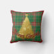 Kerst Sierkussen groen, witte plaid en een sprankelende gouden kerstboom en woorden, "Merry Christmas".