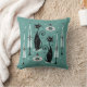 Mijn oorspronkelijke vectorillustratie van geïnspireerde katten, kerstbomen, siervoorwerpen, sneeuw en zetbursten, in zwart, roze, tinten van gedempt blauwgroen en een hint van ivoor. ©Christine Duffield 2019-21