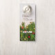 Vrolijke kerst deur hanger met niet storen geschreven op het. boom en lichten achtergrond.