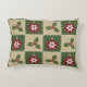 Vier vierkantjes in groen en bruin zijn voorzien van rode versieringen met witte sneeuwvlokken en groene holly met rode bessen. White stitching voegt een decoratieve aanraking toe, waardoor het herhalingspatroon het uiterlijk van een quilt geeft, wat een perfect gezellig gevoel creëert voor de kerstvakantie.