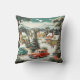 Schattige midden-eeuws kussen in moderne stijl met mooie huizen, buren, versierde kerstbomen, besneeuwde straten met rode en turquoise auto's. Mooie met sneeuw bedekte bergen op de achtergrond. #generativecontent