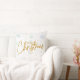 Kerst thema kussen. Vrolijk kerstfeest in goud met kleurrijke / kleurrijke sneeuwvlok achtergrond. Geweldig voor thuis en kantoor.