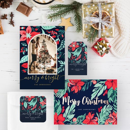 Kerst Waterverf Red Botanical Blue Holiday Lint