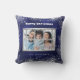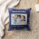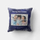Een diepe blauwe achtergrond met faux zilveren glitter, mousserende sterren. De blauwe kleur is ongelijk. Pas uw eigen foto, naam en een jaar aan en voeg deze toe. Met de tekst: vrolijk kerstfeest. Een vensterbekleding over uw foto.