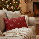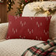 Donkere rode kussen in landelijke boerenstijl met kleine bomen voor een lui huis in de winter. Vind meer overeenkomende objecten in mijn Collectie "Kerstmis in rood, blauw en wit"