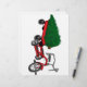 kerstboomlevering in een kleine rode wagen, driewielig stijl. Heel leuk retro cadeau.