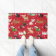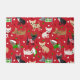 Cute Kerstmis Chihuahua-honden met zwarte, tan, crème, blauwe en grijze jassen, gekleed in feestelijke feestelijke kleding, kerstmantels en argyle-truien met een verspreid kerstsierpatroon.