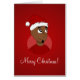 Speciaal ontwerp met een afbeelding van gelukkig glimlachend Afrikaans-Amerikaans man met het pet van de Kerstman; met bewerkbare tekst sjabloon, kerstontwerpen met een rode achtergrond, gemaakt door Radka Kavalcova