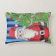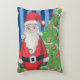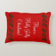 Kute vakantie-accentuerslussen die de kerstman voor een kerstboom tonen die is versierd met veel leuke en unieke versieringen. De omgekeerde kant van de kussen is helder rood en heeft een heilige boodschap met de tekst: "Heb een Holly Jolly Kerstmis!" Een origineel kunstwerk van Angela Hoard-Dunn.