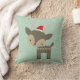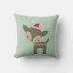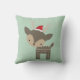 Een schattig en feestelijk kussen met een hipster-minimalistisch gevoel. Een charmante illustratie van een bruin houten hert met een rode santa-hoed - hipsterstijl. Stel deze in op een retrogroene achtergrond.