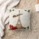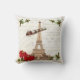 Een kerstman en zijn slee vol speelgoed vliegen langs de Eiffeltoren in sepia vanaf een antiek Frans briefkaart van de tentoonstelling in de jaren 1800, op een subtiele achtergrondcollage van muziek op vellen en omgeven door sprigs van heilige en poinsettias. Overeenkomende objecten en veel meer Parijs-design zijn beschikbaar in mijn Zazzle-winkel.