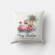 Stap in de vakantiestemming met dit feestelijke kerstkussen met een relaxte kerstman in een zonnebril, loungend in een roze flamingo die op de oceaan drijft. Een palmboom versierd met ornamenten, zachte golven en een klein eilandje maken de waterverf compleet. Het ontwerp verschijnt aan beide zijden van het vierkante kussen, waardoor het vanuit elke hoek een speelse en vrolijke uitstraling heeft. U kunt de tekst onder de kerstman aanpassen om alles te zeggen wat u wilt - of de tweede regel volledig verwijderen als u de voorkeur geeft aan een eenvoudige "Vrolijk kerstfeest" of een andere seizoensgroet. Dit kussen is een leuke en strandachtige aanvulling op uw vakantiedecor en is perfect voor iedereen die op een tropische locatie woont of gewoon van een kusttwist houdt met Kerstmis.