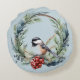 Kerstmis Chickadee Vogel in kranskunst Rond Kussen