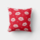 Kerstkussen, rode en witte gevlekte kussens. Festive red kussen met een patroon van lippenkussens en sneeuwvlokken.