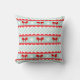 Feestelijk werpkussen met munt/witte strepen patroon, rode strikken en witte sterren.