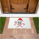 Pirate skull met een kersthoed met YO-HO-HO geschreven op pet. Een paar gekruiste snoepjes liggen onder de schedel. Inclusief een kerstpiratenschip naast de schedel.