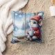 Kerstmuis in het raam met warme cacao kussen