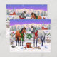 Een winterkerstscène met paarden in sneeuw.