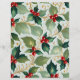 Een prachtig traditioneel kerstontwerp met geschilderde hulst, gouden takjes en parels, in een kleurenpalet van rood, groen en goud.