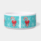 Festive en leuke rode en witte cartoon illustratie van kerstsnoepjes met mooie rode bogen. De achtergrondkleur is blauw met een licht sneeuwvlokpatroon.