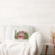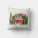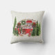 Een kussen met een schattig en grillig kerstthema. Een gezellige trailer ingericht voor Kerstmis set tussen een aantal pijnbomen.