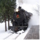 Sumpter Valley Railroad No. 19 Mikado steams voorbij het depotplatform.