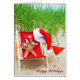 zeester in strandstoel met drink en een zonnebril met ster en rode bikini onderaan
