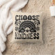 Kies vriendelijkheid kussen. Be kind citeert retro groovy zwart en beige esthetische regenboog en bloemen kamer decor cadeau idee.