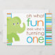 Wat leuk, kijk eens wie er een draait! Perfect voor een oerwoud of dierentuin op het eerste verjaardagsfeestje, deze groene olifant kondigt je kleine dag aan!